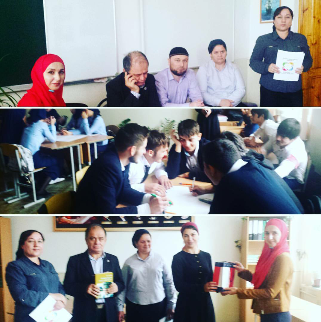 16.11.2016Координатор проекта "Вместе" по ЧР, Председатель МОД "Диалог" Лайлаъ Аюбова провела виктарину на тему: "Вместе-мы большая сила, вместе мы-страна Россия!", посвященную Дню толерантности, в Калиновской СОШ, в рамках регионального проекта "Вместе". Члены представительного жюри президент РОО "Оптимум" Руслан Ахмаев, руководитель АНО "Зеленое золото" Марина Мацаева и корреспондент газеты "Вести Республики" Шамхан Ледиев