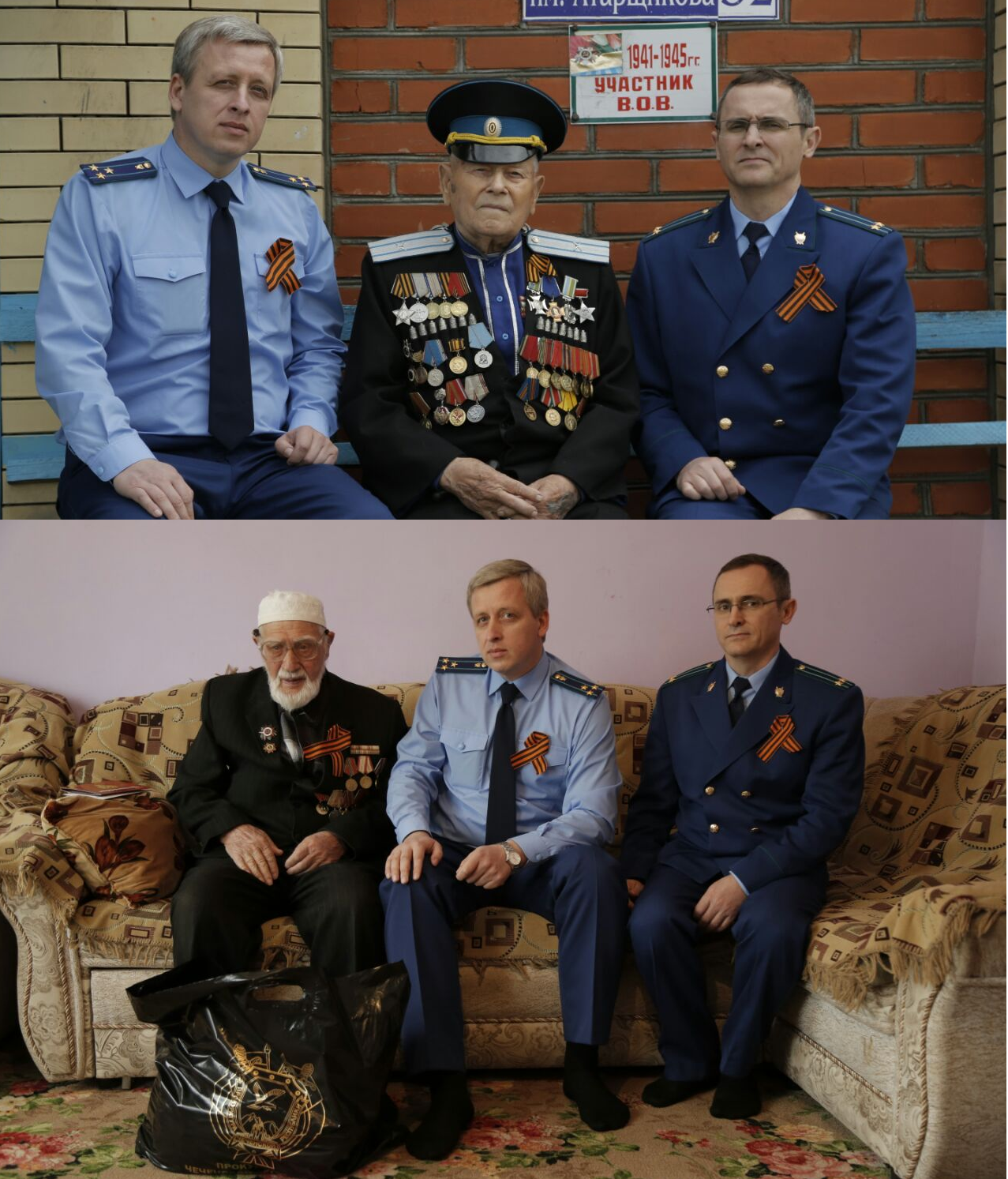 25.04.2017По поручению прокурора республики Шарпудди Абдул-Кадырова прокурором района Имраном Сербиевым и его заместителем Хасаном Магомадовым 25 апреля текущего года осуществлен выезд по месту жительства ветеранов Великой Отечественной войны Авсара Халилова и Владимира Атарщикова, проживающих в Наурском районе.