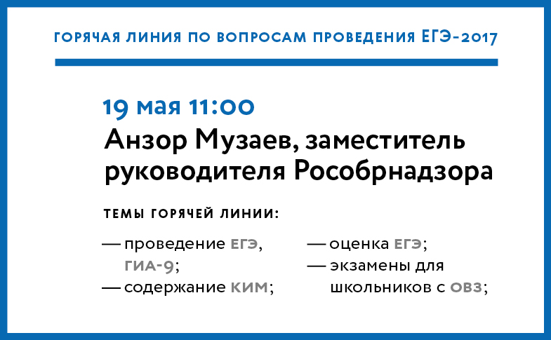 19 мая заместитель руководителя Рособрнадзора в ходе «горячей линии» ответит на вопросы об организации ГИА в 2017 году