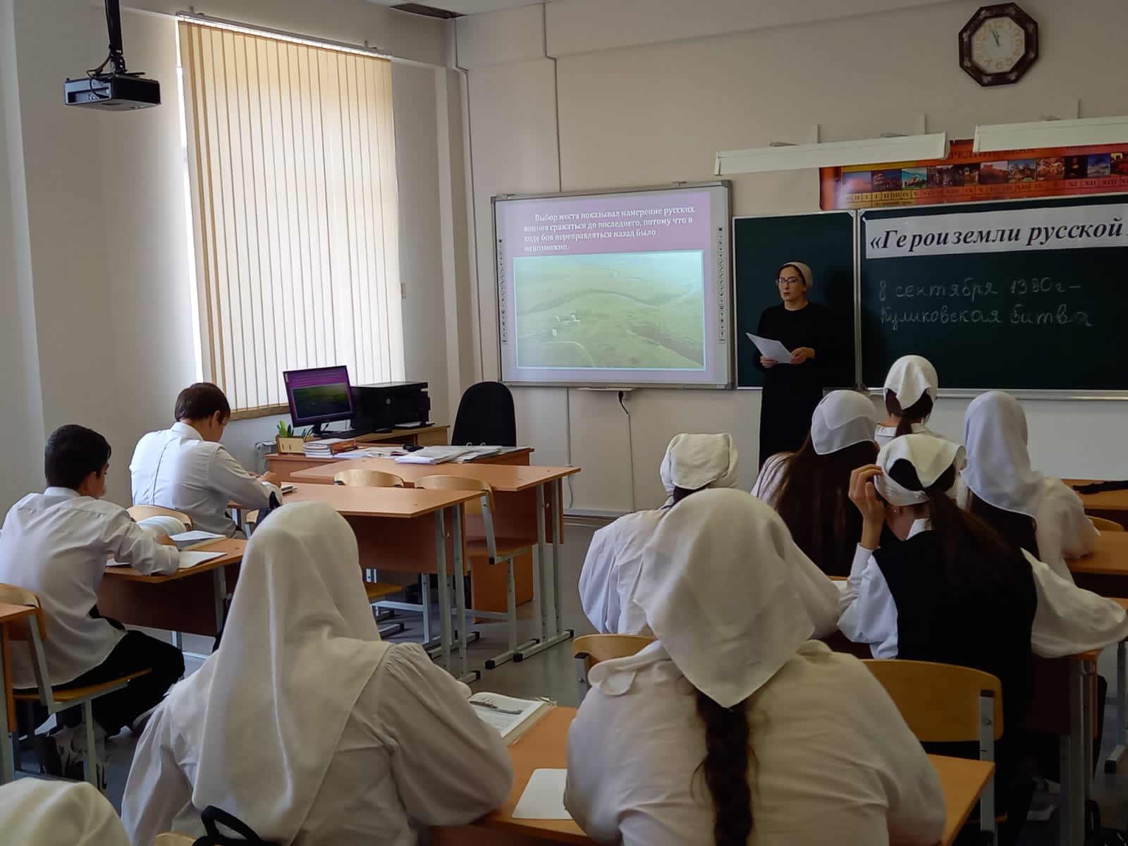 27.09.2023В МБОУ "Калиновская СОШ" прошло мероприятие "Герои земли русской", посвященное дню победы русских полков во главе с великим князем Дмитрием Донским над монголо-татарскими войсками в Куликовской битве (1380).