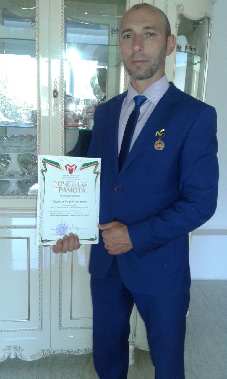 Профком МБОУ "Калиновская СОШ ", Хусаинов Ислам Ярагиевич, награжден Министерской грамотой и медалью