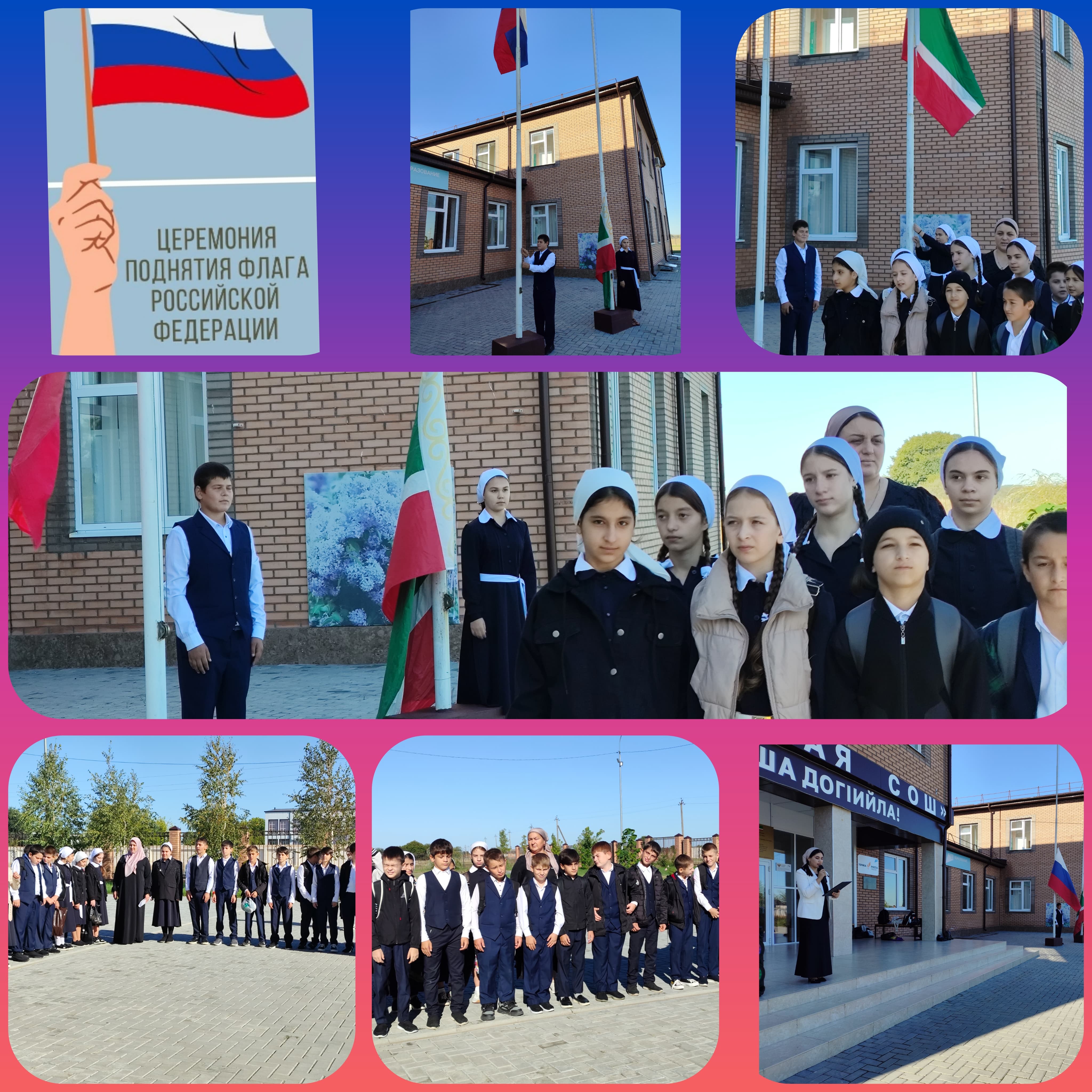 15 сентября в МБОУ «Калиновская СОШ» учебная неделя традиционно началась с церемонии поднятия флага и исполнения гимна РФ и ЧР. Право поднять флаг было предоставлено ученику 8 в класса Сатенову Умару и ученице 7 б класса Дадовой Селиме.