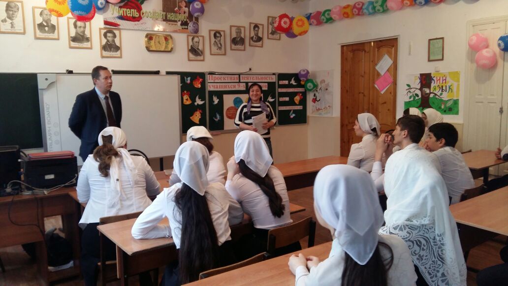 02.03.20182.03.2018 г.в МБОУ"Калиновкая СОШ" прошло анкетирование среди учащихся 10 класса. Школу посетили:Руководитель проекта-Владимир Владимирович Сухов, руководитель проекта,председатель МОД"Диалог"-Лайла Х. Аюбова, Зам. Президента РОО"Оптимум"и ОНК Исраилов Адам Д.
