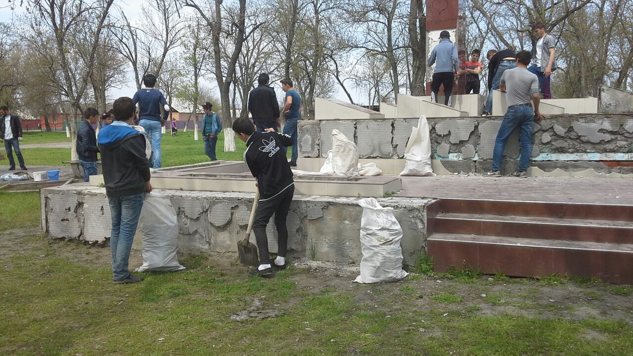 24.04.2015г классные руководители и ученики 9-11-х классов провели субботник в парке. Девочками побелены деревья, мальчиками проведены работы по очистке и восстановлению памятника.